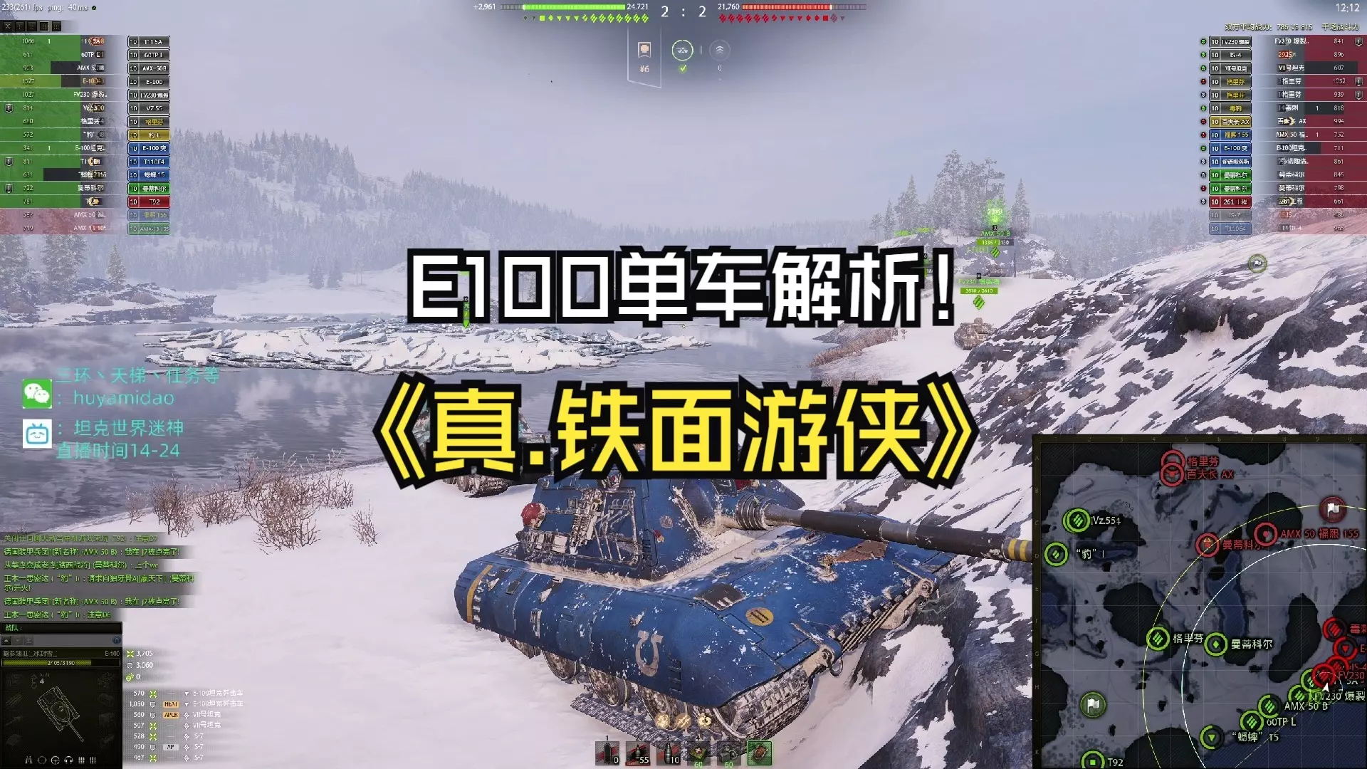这是《坦克世界》的精彩对战集锦,展示了7台加特林机炮战车对战将E100打成筛子的激烈场面,还附带了主播胖丁咸宁七的直播信息,欢迎玩家投稿有趣素材。