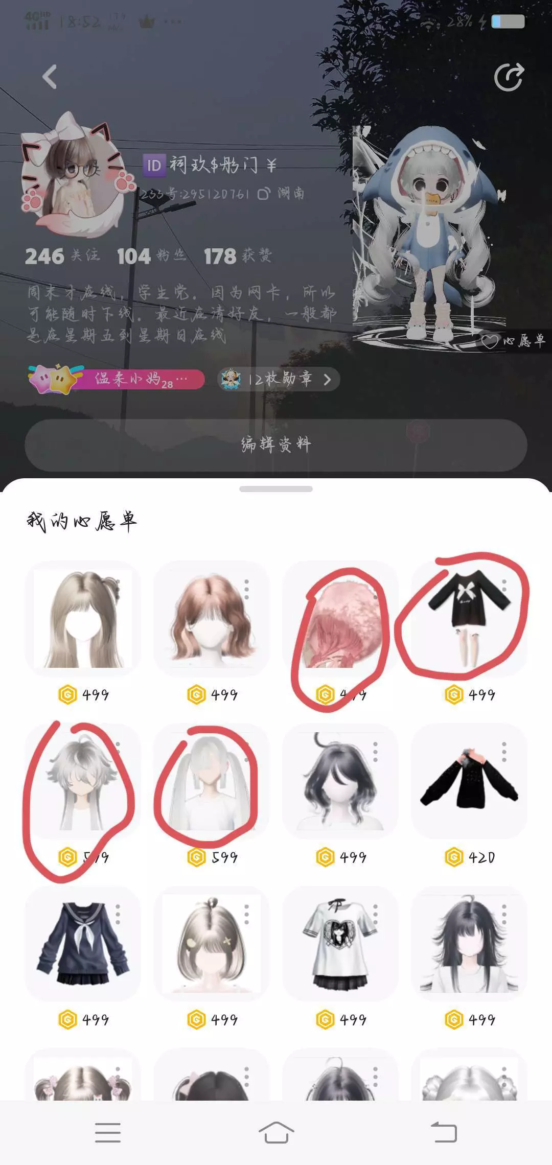 有大佬可以送我心愿单的这几个吗,后面一张图的那个头发真的好想要