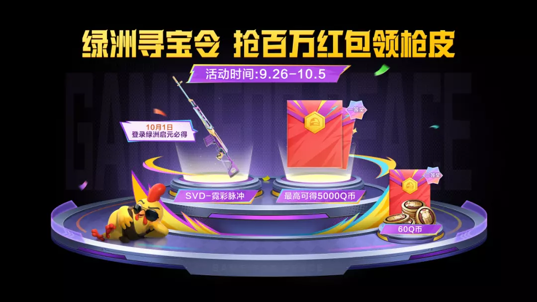 10月1日当天一等奖金额飙升,最高可获得5000元大奖,且当天登录绿洲启元大厅后还可在活动领取全新枪皮肤SVD-霓彩脉冲!