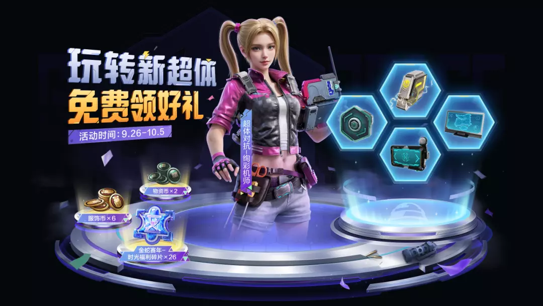 9月26日-10月5日,体验新超体,完成指定任务获得能量,用能量解锁超体更新内容,就能获得物资币、服饰币等好礼!