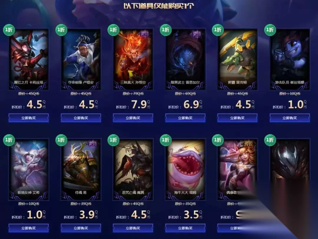 以前有一段时间的幸运召唤师是能开出1折,3折,5折,7折这样四种折扣的活动,在2018年3月份到7月份的时候会有,而且当时大部分玩家都能获得这样的折扣机会,然后到了2018年8月份,这个幸运召唤师又变成了最初的样子,部分玩家能开启折扣,开启的话就直接是1折,恢复成最初的样子之后,这个活动每次获得资格的玩家就不是很多了。 幸运召唤师也不是每位玩家都能开启,每次都是部分玩家能开启,如果你没中的话,等下个月吧,反正每个月都会出这个活动,什么叫“幸运召唤师”,幸运两个字就表示着只有一部分人会获得这样的资格,中的话可以考虑入手,不过只能入手一个,有些小伙伴说自己好几年都没中过这个活动,那你的运气是够背的,老皮每年都能中几次幸运召唤师,如果说是老玩家没资格中的话,老皮的号是2012年创号的,这时间不短了,所以所谓“老玩家不可能中”的说法也不成立,最后说一下幸运召唤师商店,要入手皮肤的话,优先选特效皮肤,优先选特效皮肤,优先选特效皮肤