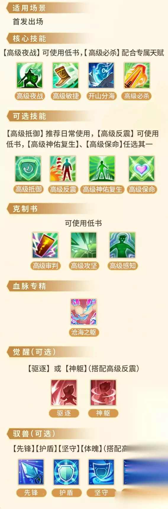 1.资质(变异加饰品) 整体资质较为均衡 攻击资质:1316—1580 防御资质:1316—1580 体力资质:1154—1385 法力资质:1316—1580 速度资质:1316—1580 2.可学习特殊技能【开山分海】 该技能需要快速出手获得群伤减免,提升自身站场能力,因此速度最好较快 临时提高攻击和命中,对目标造成伤害同时为自身附加“群伤减免”状态,持续2回合,此状态下受到的群体伤害降低40% 消耗魔法:自身等级×3 3.专属天赋 碧波仙子作为成就宠,还可以使用道具兑换专属血脉,此时携带【高级必杀】可以获得更高的收益 携带神佑复生类技能时,触发几率+5%;携带保命类技能时,触发几率+6%;攻击时若触发暴击,有100%几率(剑气四射、开山分海以及群法类技能触发几率为60%)随机对敌方目标进行一次攻击 注:可从【成就奖励】中获取该天赋的专属血脉 4.养成攻略一图流