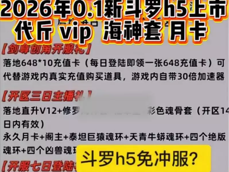 这是2026新斗罗大陆h5免冲服,玩家可在该服免费获取砖石、无限资源,还能获得各类代金券,享受充值抵扣,同时拥有丰富的游戏奖励与VIP特权,爽玩游戏。
