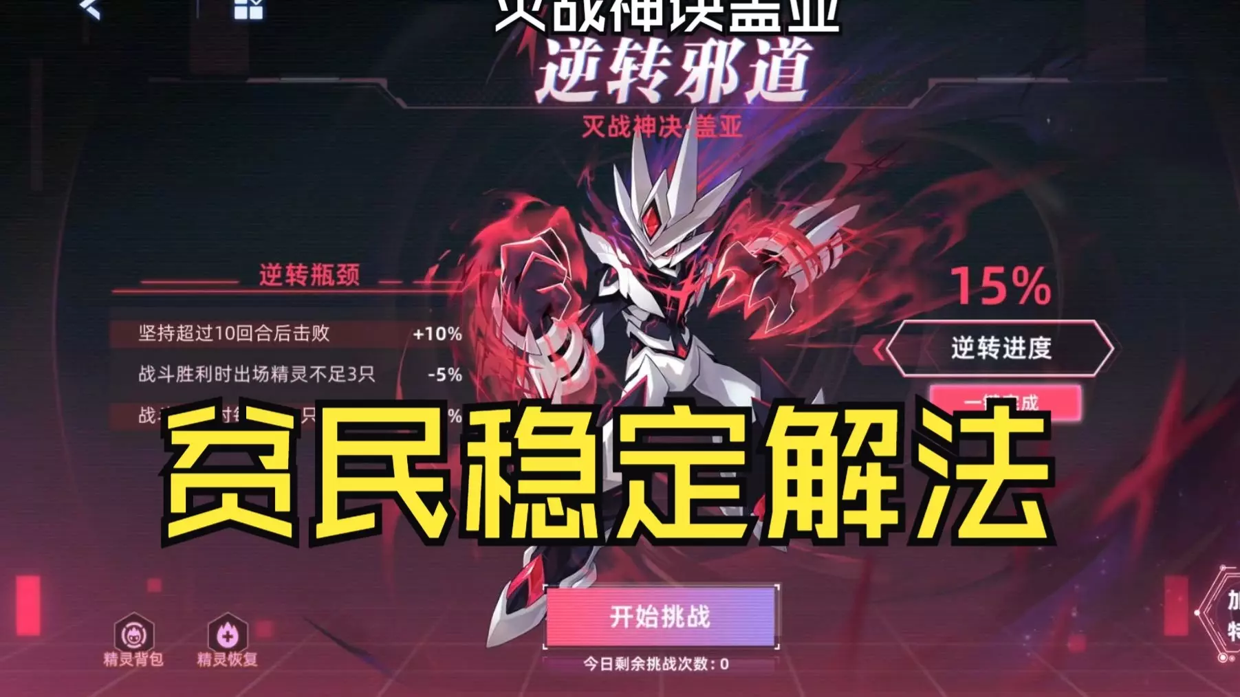 这是一篇圣灵谱尼重制打法攻略,介绍了仅用两只精灵就能完成圣灵谱尼挑战的方法,还展示了挑战中需要击败的欧德奈瑞、星域之魂等精灵,以及出战的星光·鲁斯王等精灵的战斗技巧。