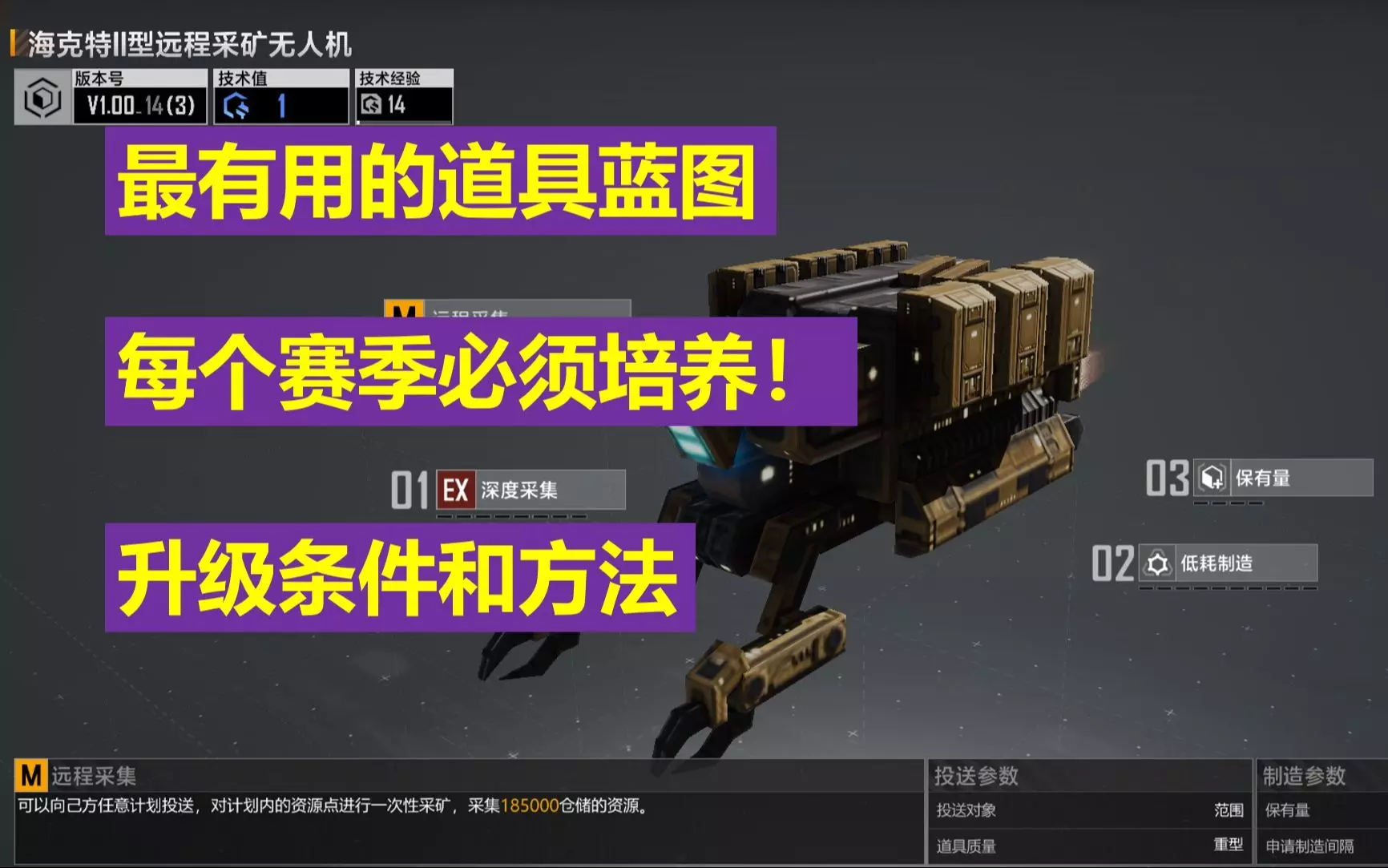 最值得培养的道具蓝图,升级方法和条件,采矿无人机最有用,每个赛季必须使用培养