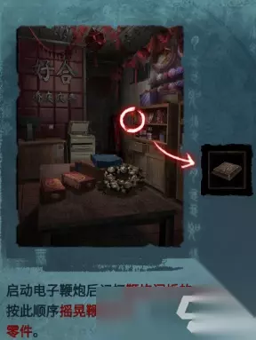 启动电子鞭炮后记忆鞭炮闪烁的顺序,并按这个顺序摇晃鞭炮部件,成功后就能获得物品:小零件
