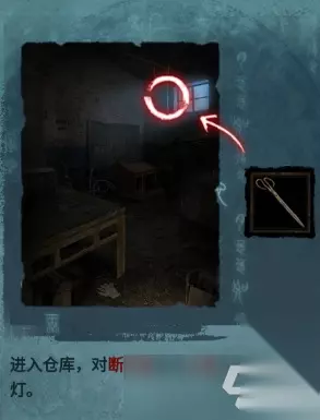 进入仓库,对断灯绳使用火钳后拉开房间