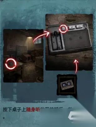 回到仓库,将电池放在随身听里,按住随身听的开关,就能获取一些信息。