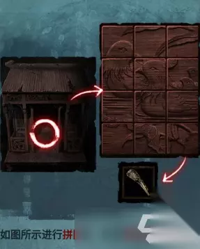 仓库的角落里的神龛中有一个拼图机关的盒子,如图所示进行拼图,获得铜指甲
