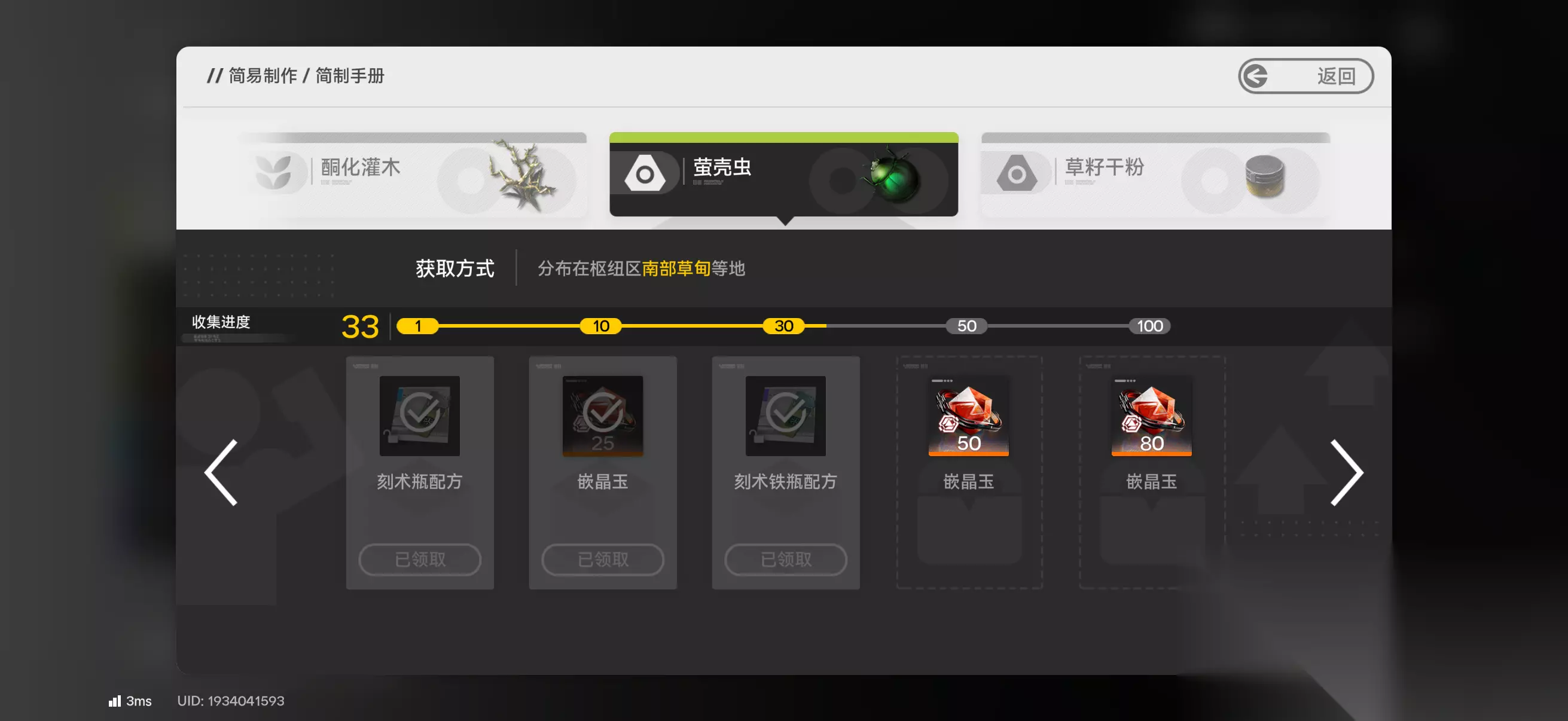 自玩家进入游戏后就开启了采集玩法,特别是还没有架构出足够的滑索架的时候,采集只能靠玩家自己。当玩家在探索地图时注意地面上亮闪闪的提示,这些都是能采集的内容。每成功解锁一个新的资源类目就能在建议制作后解锁一个新的建议制作类目。至于相关的制作配方的解锁,是有前置条件的,一般来说是要采集到足够的数量。除了能获得配方之外,还能获得嵌晶玉奖励。想要快速采集的话,其实可以利用标记,在一些资源点密集的地方进行标记,后续在滑索架的时候,也是一个很好的参考依据。