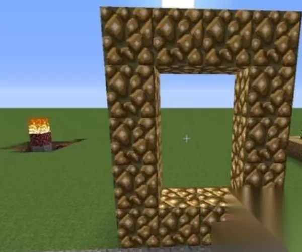 2、我们先找一块空地,然后使用萤石搭建出一个长5宽4的门。