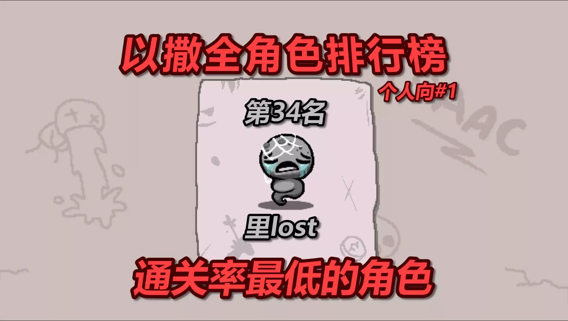 依旧是投币过1500日更!!! 游戏名:以撒的结合 角色:里LOST 角色特性:自带飞和子弹穿墙,血量固定为半颗魂心,,无法增加血量。可以免费拿恶魔房道具,交易物品后,房间中的其他血量交易物品消失。生成卡牌时,有10%概率改为生成1个 神圣卡。每当生成道具时,只会生成标签“攻击性”的道具,且若这个道具的品质为2及以下,则有20%概率被重置为其他道具 使用建议:尽可能的获取商店资源,多炸骷髅,寻找游戏中仅有的一些能保命的道具,如卡槽、抽卡盒、后悔药、长子权等。并且由于里lost必定能获取A+,所以要多注意特效类道具,其余全靠缘分。 角色评价:全红非常困难的角色,但只要不碰过于困难的终点,普通模式下里lost有非常惊人的虐菜能力,只要对游戏的操作足够熟悉,且明确里lost找卡牌、玩商店的运营思路,那么想轻松且爽快的通关一局里lost是一件很容易的事。视频为了展示该角色的容错率刻意打了最难的终点百变怪,可以看出即使是在限定了很短的时间并拿到了一个很糟糕的道具的情况下,里lost依旧有非常可怕的强度。总结就是高手寻求刺激的强力角色,观众可以根据自身对这个角色的难度理解手动降低这个角色的排名。