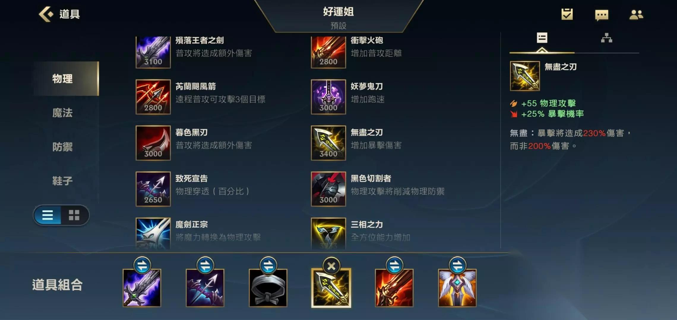 四.无尽 第四件装备我们就出无尽,无尽可以有效的提高自己的暴击伤害,和暴击率。