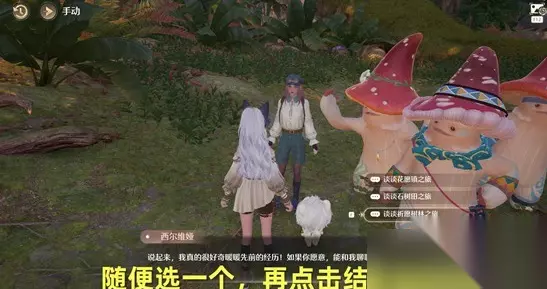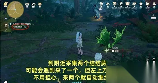 和托德杜杜对话; 到附近采集两个结结蕨; (左上方的指引上采集了可能会不显示数量,依旧为0,但不影响任务进程,采两个后,任务会继续) 我们收集完成后,返回和 西尔维娅 对话; 选择了立个牌子,然后在池塘里,点击涂鸦,制作警示石;