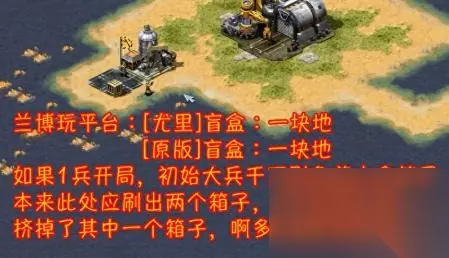 【016】箱子是可以被“排挤”消灭的,如下图是知名非官方对战地图,简单粗暴捡箱子,满屏的宝箱,但是假如用建筑物和步兵“排挤”掉箱子,就算后面卖光一切,箱子也不会再刷新出来。