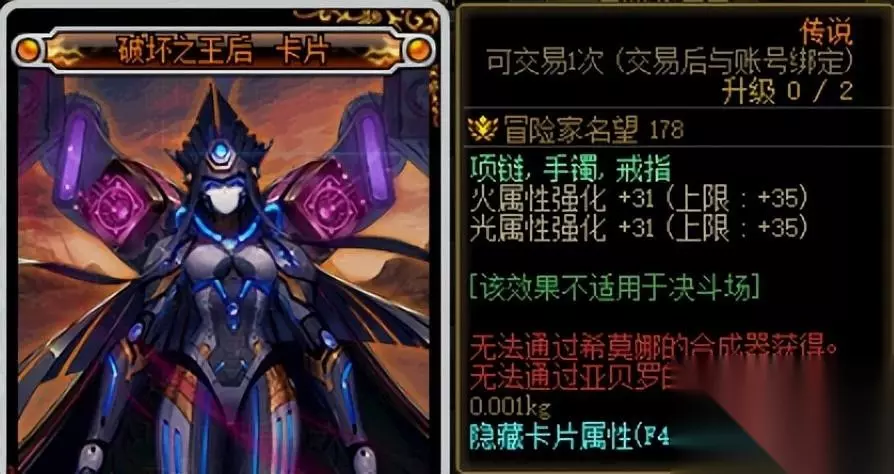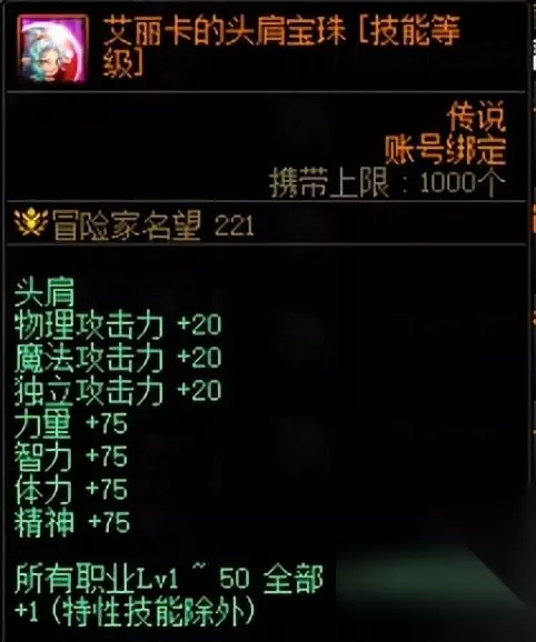 上述卡片的满级售价大约为1700W,坯子价格大约在270W金币左右。 扣除手续费,平均每张卡可赚200W金币左右。 加上这些卡片非常容易获得(每周开卡片册+军团地下城材料兑换),所以非常推荐用这些卡片。 二、自用提升附魔道具 获得的5张传说卡片也可以升级买来的未升级附魔卡片,给自己的角色使用。 下面将附魔部位进行分析。 肩膀部位在游戏内可获得最好的道具是【黑色恐怖之阿斯特罗斯】。 在未升级的时候就已经提供了最主要的2%技攻加成,升级只提供少量三攻四维,另外肩膀部位还有更好的节日礼包宝珠,所以升级优先度较低。