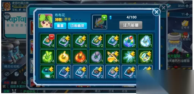 玩家还可以给每个精灵开启特性,当玩家精灵和特效相匹配时可以发挥最大功效,玩家可以通过特性改造芯片来重置特性。