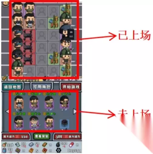 示意图 2. 降低食物消耗 必须要知道的是,你在一场战斗中上场的幸存者消耗2点食物值 未上场的幸存者仅消耗1点食物