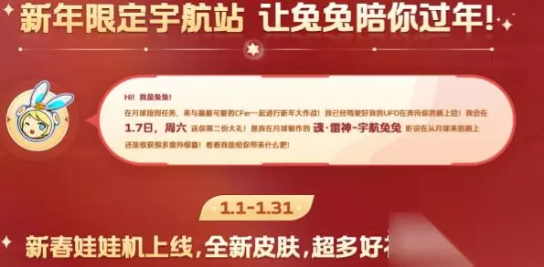 CF拜年码2023分享给大家,不少小伙伴对于这个CF拜年码2023比较的感兴趣,大家可以通过这些拜年码来获取不错的奖励,大家如果实在不清楚可以看看这篇233乐园攻略,大家看完就知道了。 CF拜年码2023 活动:新春娃娃机 时间:1月7日-1月31日 地址:点击进入 B站口令(暂无,等1月7日有了再发评论重新置顶) 暗号:宇航兔迎枪神 俱乐部拜年码:AG666 穿越火线拜年码暗号在哪输入 1、首先我们需要登录上述活动地址,进入到新春娃娃机活动页面。