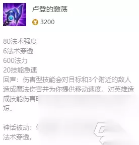 配备介绍 1、【卢登】-神话配备:+80法强、+6法穿、+600法力、+20技术急速; 损伤技术能够对方针和邻近3个敌人形成损伤而且进步移速,而且会缩短技术冷却时刻,合作卡牌的黄牌罚站,出卢登损伤打一套损伤会很高。