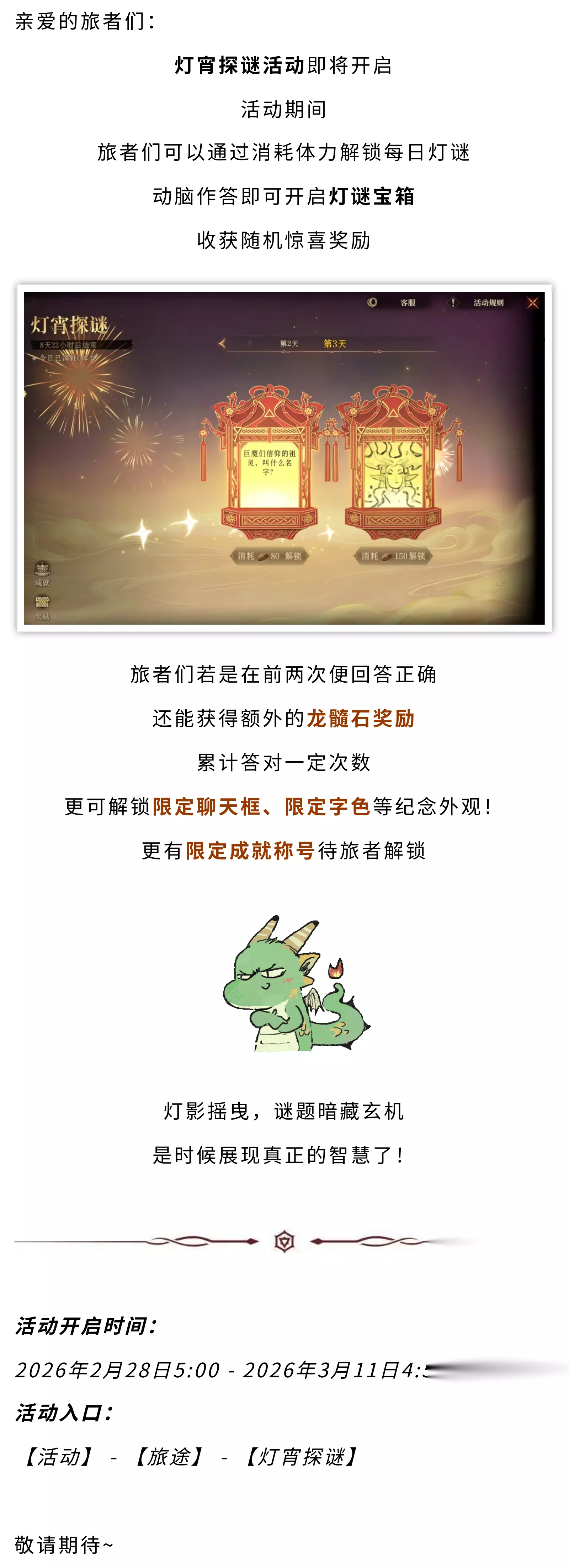 龙息神寂 龙息资讯|灯宵探谜活动预告