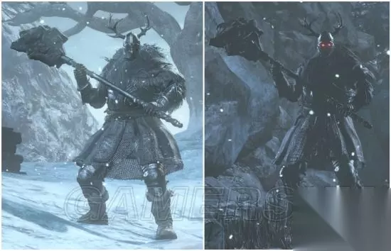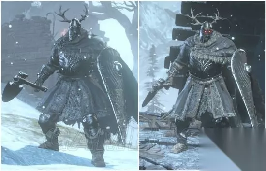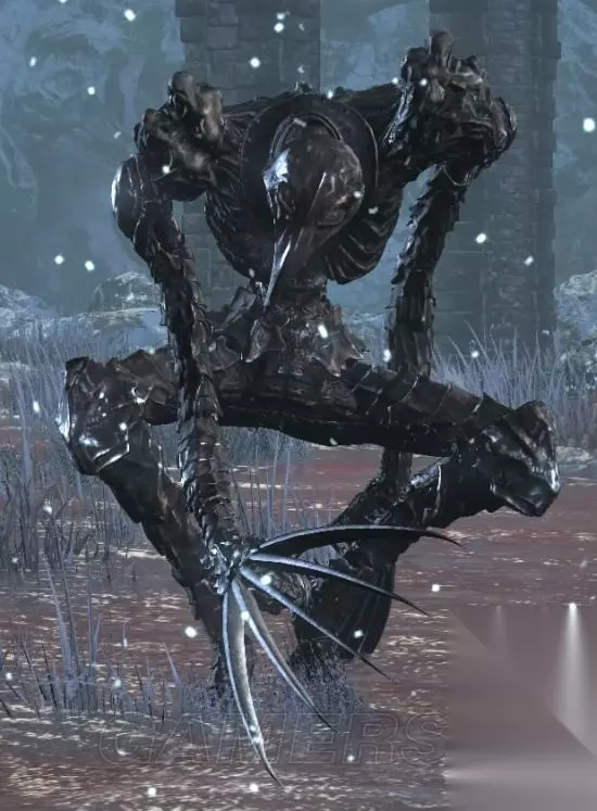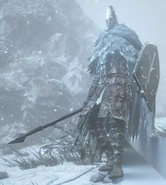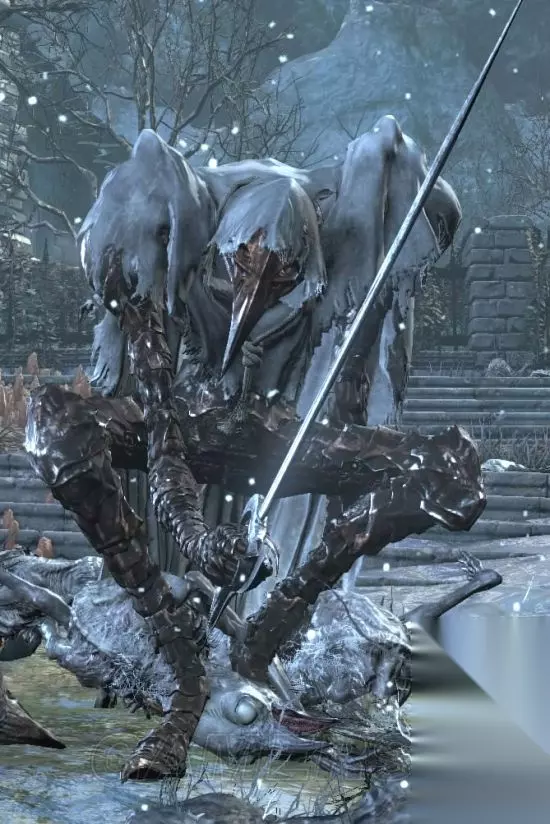 出没地:雪原、绘画底端(树根区)、覆雪山径 拿着军刀和火把的幽魂,使用两者组合,让人眼花撩乱的剑术,攻击欲望高,速度也快,但因本体太过贫弱,没强韧又血少,无用武之地,会使用幽魂军刀战技溃防连击,连续两次右下往左上的回旋斩后,将武器由左上往下砸,玩家频繁举盾时会常使用,防御的耗耐很高,毕竟本来就是破盾用的,动作较玩家使用慢,轨迹特效也不明显,玩家使用时因为耗魔少、发动快速、可连段又高伤,跃升为PVP厨武,看到怪物的招式后觉得军刀不该是黑魂的任何一个武器分类,如果这武器是生在血源诅咒,想必动作会帅气不少 米尔伍德骑士 灵感来源可能是维京人,名字和设定也都飘着浓浓北欧味,在游戏数种骑士敌人中,应属于力量型,我第二喜欢的怪物,仅次于教堂骑士,虽然大小和教堂骑士类似,甚至更大,但强韧却远不如他,盔甲分为披风、披肩、骑士长的罩袍,玩家只有披风能穿,我没什么想说的了。 米尔伍德骑士(米尔伍德大弓)