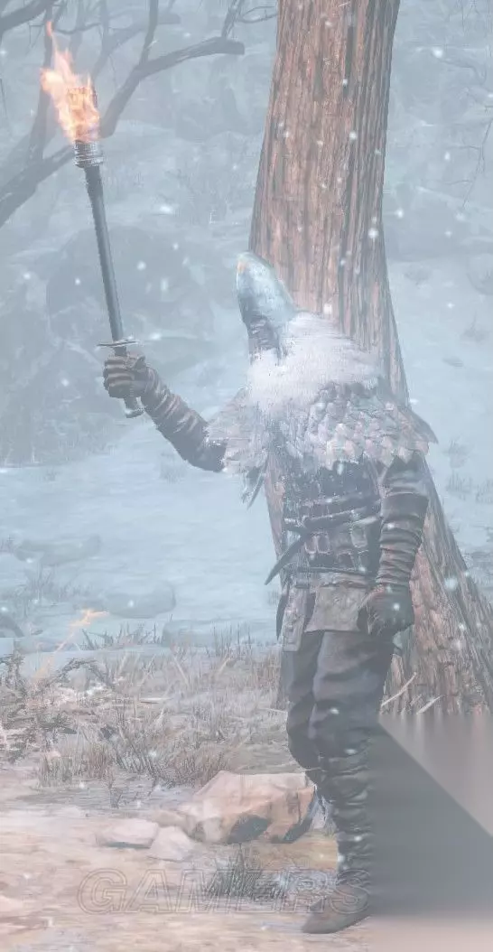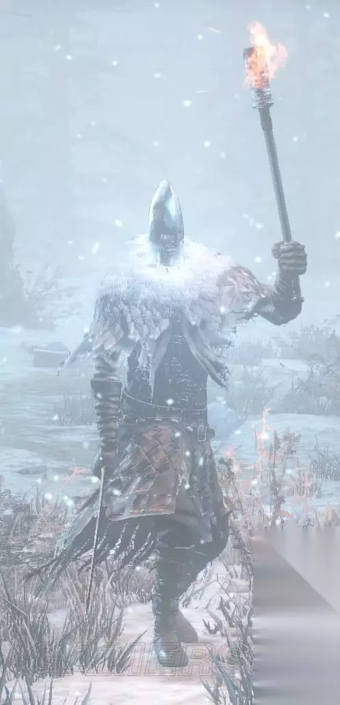 出没地:雪原、绘画底端(树根区)、覆雪山径 拿着短枪和盾的烦人怪物,盔甲为披风板,不管是移动还是攻击,几乎是常驻举盾的状态,因此推荐双持,使用长枪和盾,动作平凡,但因为常驻防御,还挺麻烦的,解除锁定绕背的效果还不错,不过为什么从左后或右后砍他还是判定成防御啦……不会使用战技投枪。 法兰幽魂(幽魂火把) *游魂