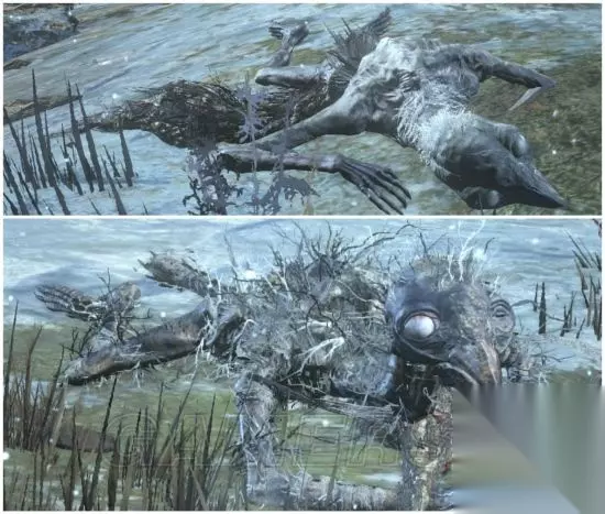 (上为小型,下为大型) 出没地:鸦村 在鸦村外污水区的住民们,叫声很吵,主要使用啄击,但距离短到不行,大只鸦人会吐出累积剧毒值的毒液,小只的偶尔也会吐,但并没有攻击效果,只是用来表现悲惨程度吧! 鸦人住民 *游魂