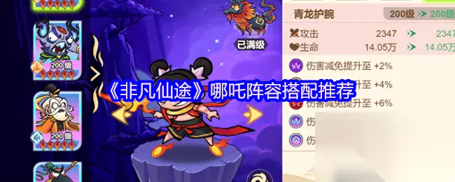 《非凡仙途》哪吒阵容搭配推荐 阵容推荐: 元始天尊+诸葛亮+哪吒+刑天+刘备 元始天尊:极致的的输出,法宝和技能都带有无敌,推图PK必养神将。 诸葛亮:续航超强型辅助,技能加成搭配元始天尊打出极致的输出。 哪吒:首充神将,前中期前排肉,能扛能复活能击退,氪金玩家,0氪玩家必选神将。 刑天:能扛能输出还能为队友分摊伤害,保护输出位的首选神将。 刘备:能抗能输出,法宝可削弱敌方防御能力和能量恢复,PVP中的佼佼者