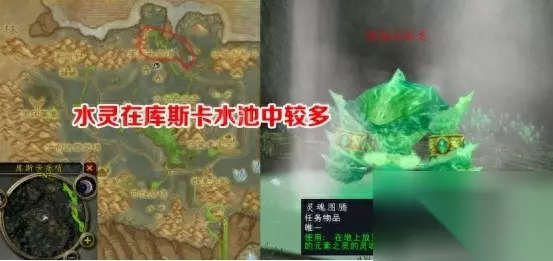 愤怒的水灵可以在地图北面库斯卡水池中找到,具体在库斯卡岗哨的东北面。依然要先插图腾,再击杀水灵,俘获5个水之魂即可。