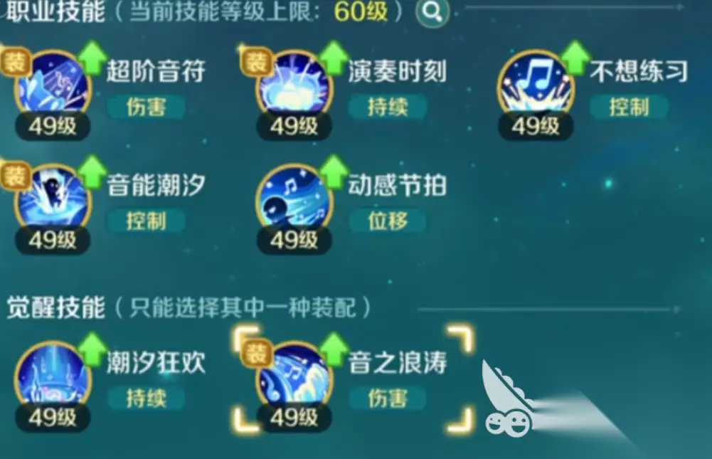 音能潮汐技能的加点要根据队伍的构成灵活调整。如果队伍里没有治疗位的话,就适当减少“演奏诗歌”的暴击伤害配置,转而加强“音能潮汐”的支援效果,提高乐师的治疗和护盾值。如果队伍已经有稳定奶妈的话,这个技能只需要点到一级就可以保证性价比了。 在PVP场景中,乐师的技能搭配主要考虑的是控制和生存能力。推荐的配置是“音能潮汐”、“超级狂欢”、“不想练习”、“动感节拍”。这套技能组合除了重视输出爆发之外,还可以控制住敌人并且给自身提供生存保障。实战的时候最好由玩家自己来操作,保证技能可以准确地发出。