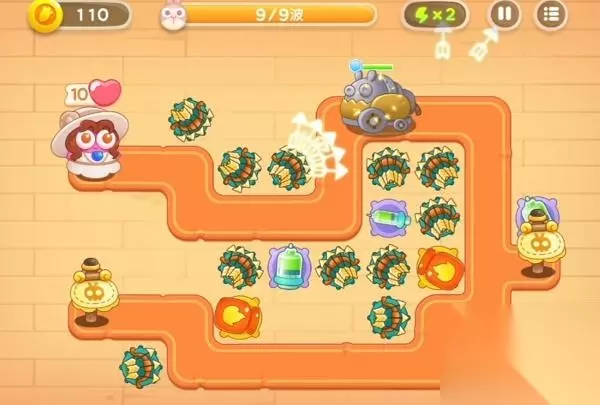 4、第4-9波注意事项:4波有个贵妇兔,5波开始出大炮兔,大跑兔破甲前会一直放兔子出来,注意打护甲和集火速度快的兔子即可。炮塔的话,看看哪些建筑还没有清,尽量在拐角处建筑就行了。需要注意7波以后,大炮兔较多,需要更多的火力。剩下的就是自己喜欢用什么炮塔就用什么,这关的位置足够多。
