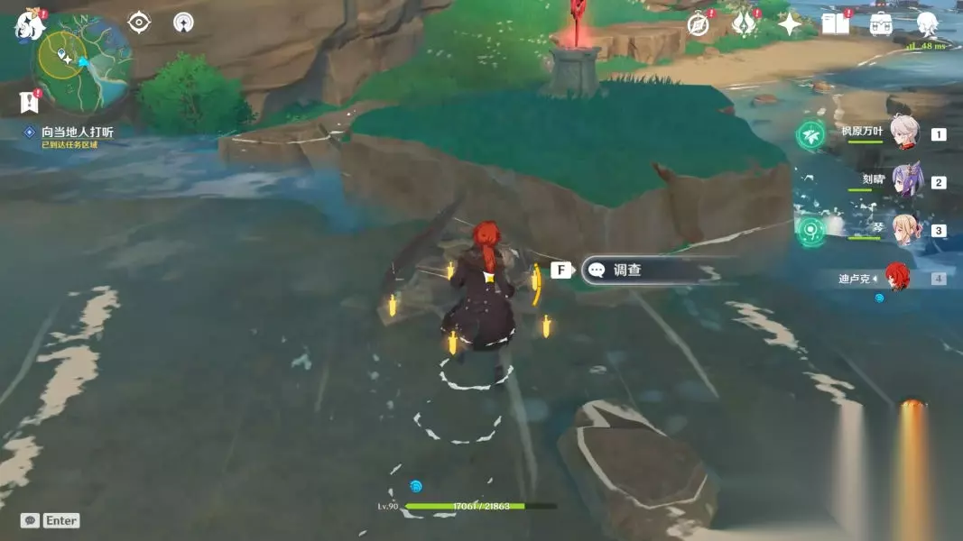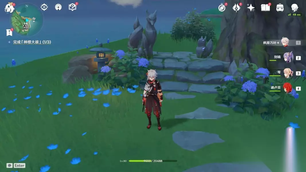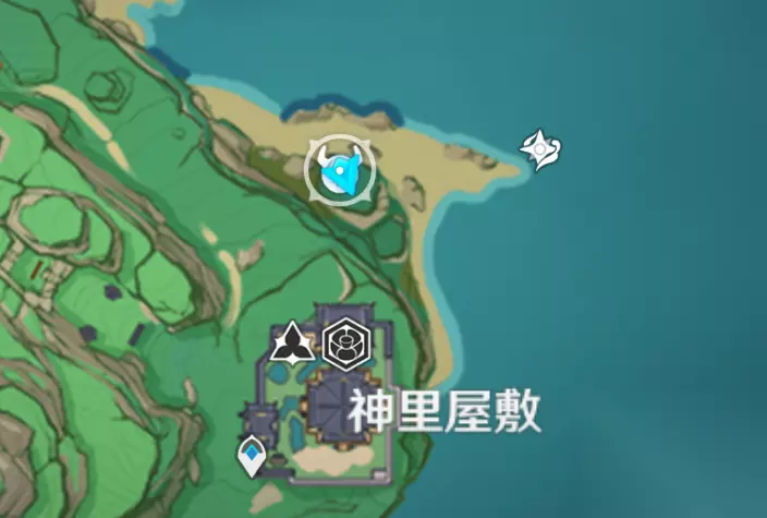 神里屋敷 正文: 传送到神里屋敷传送点并前往北边的礁石上