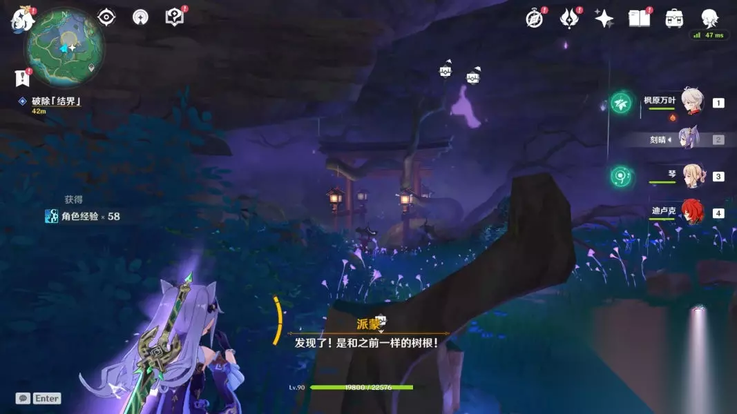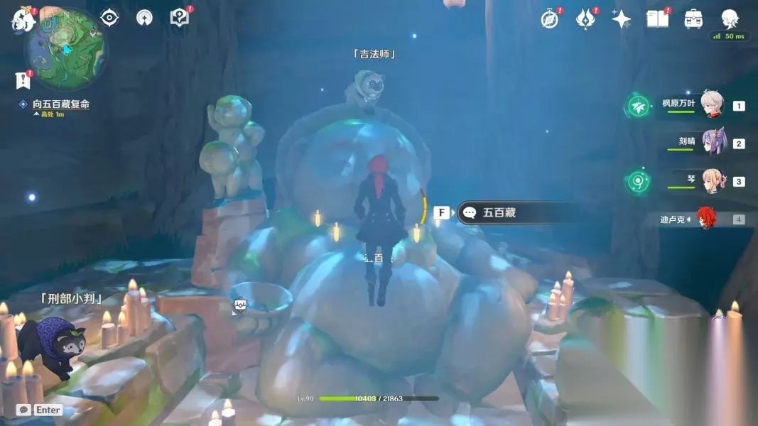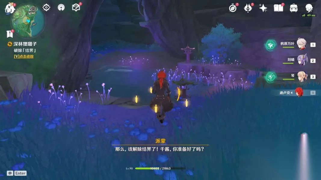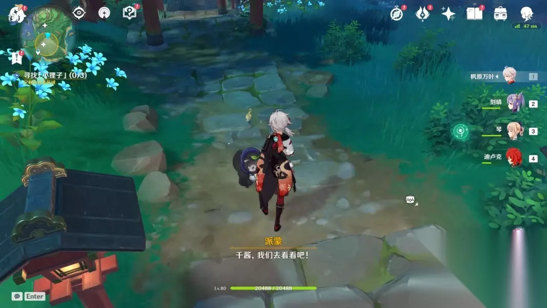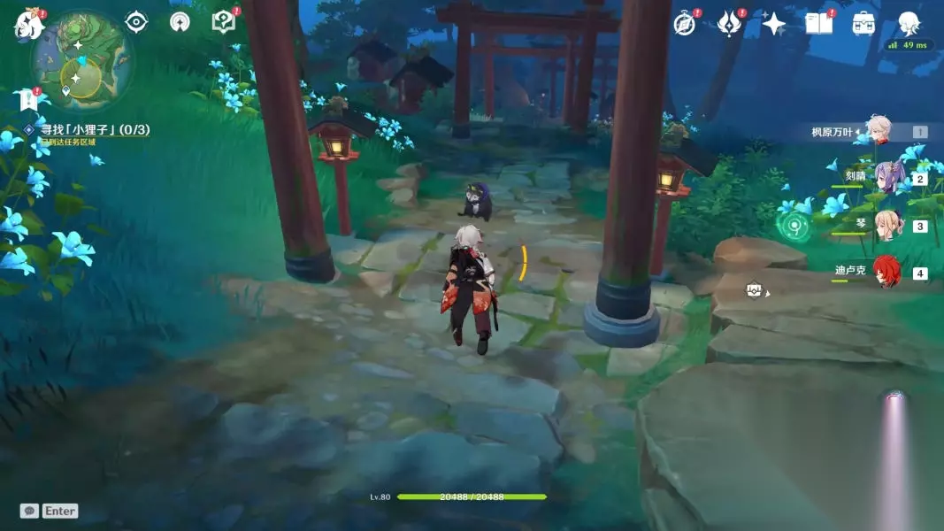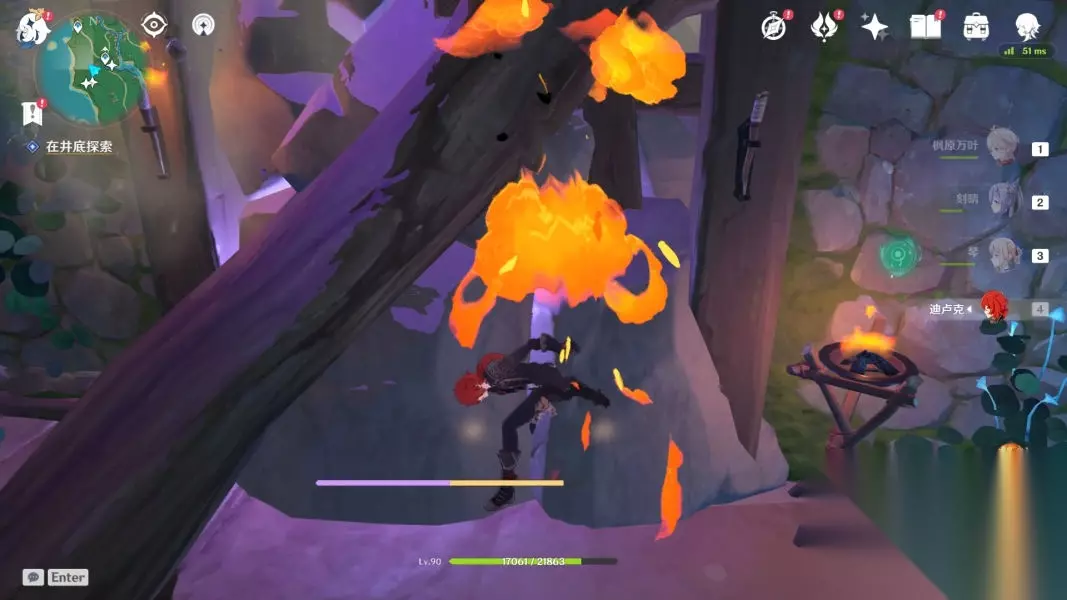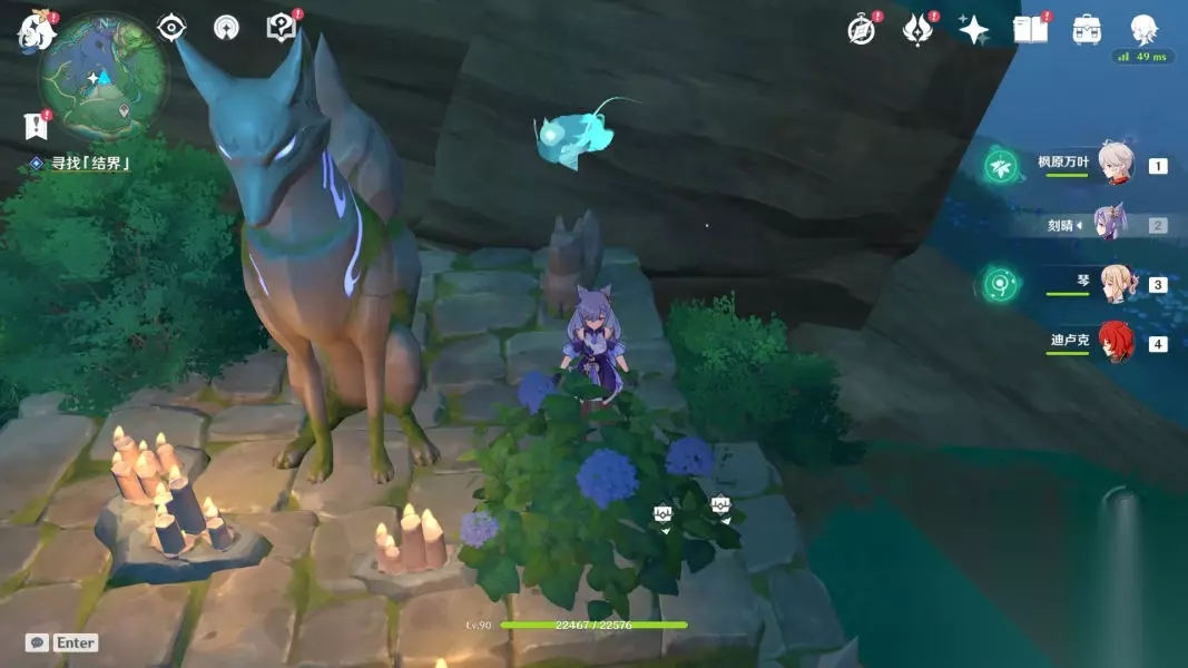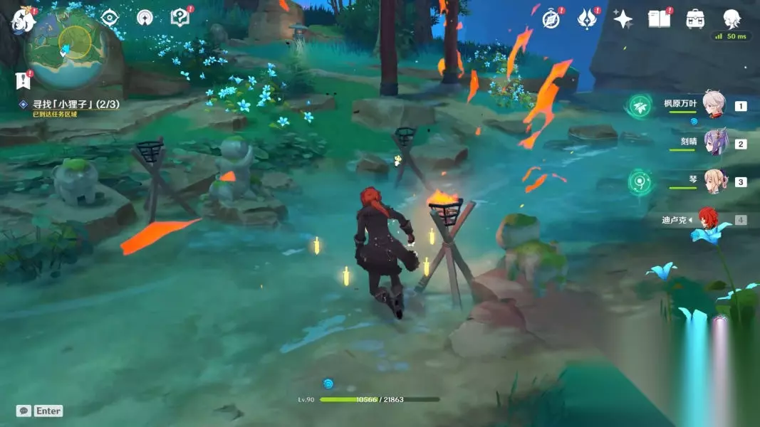 跟着它一路下山,最后会变成火把,使用火系角色进行火元素攻击即可