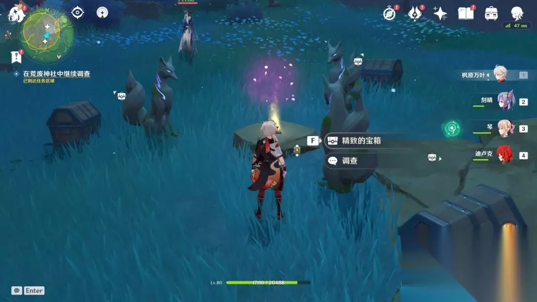 对话完成,三个人影汇聚到狐狸旁后,会出现三个宝箱以及一份调查