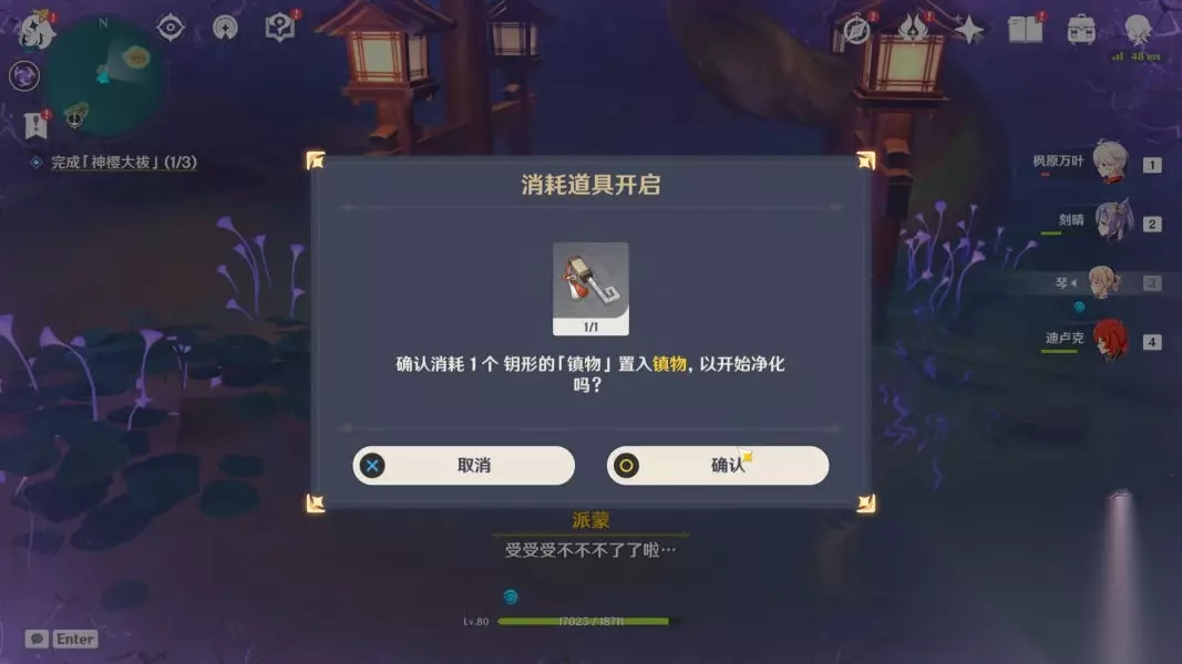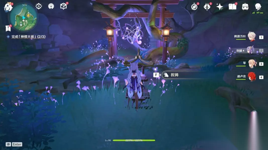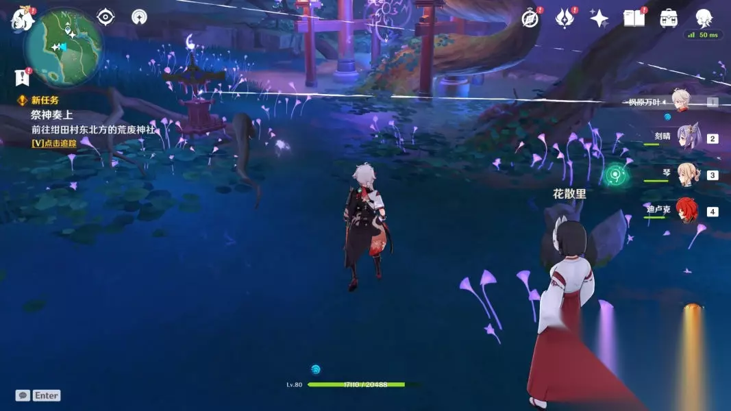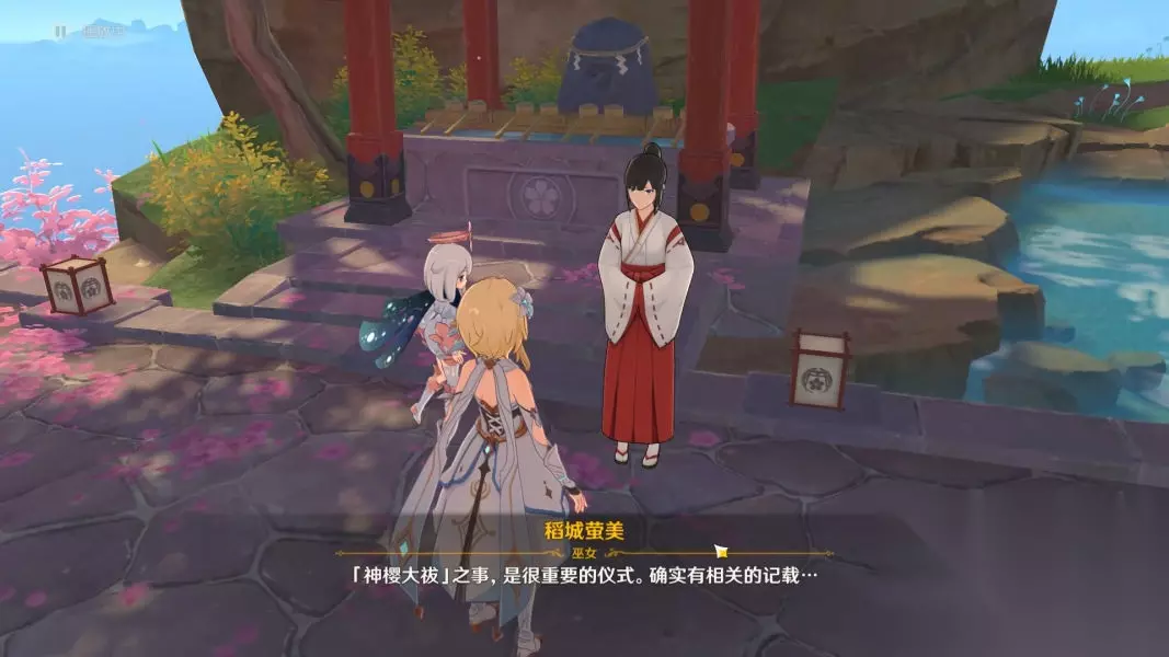 之后需要前往鸣神大社,与传送点旁的巫女交谈