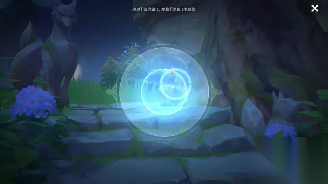 使用镜子来观察小狐狸共3个并启动出现的机关