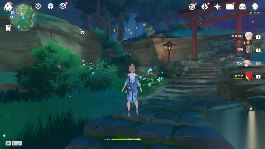 在第6~7个鸟居的地方会有丘丘人,以及一个宝箱,还有一条不显眼的小路
