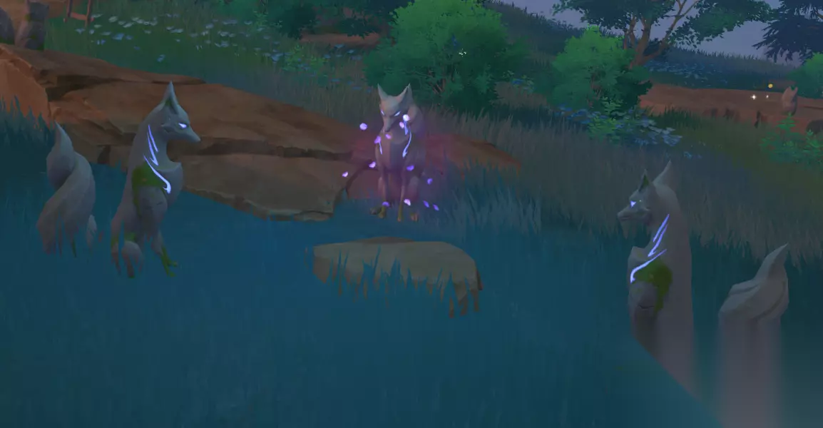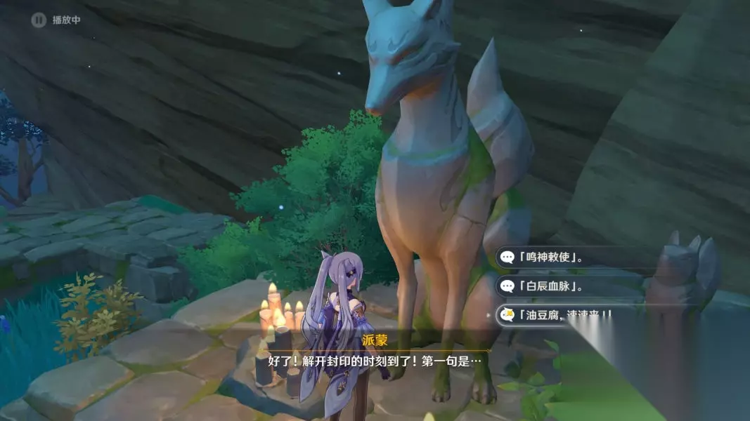 使用雷元素攻击大狐狸雕像,出现镇物