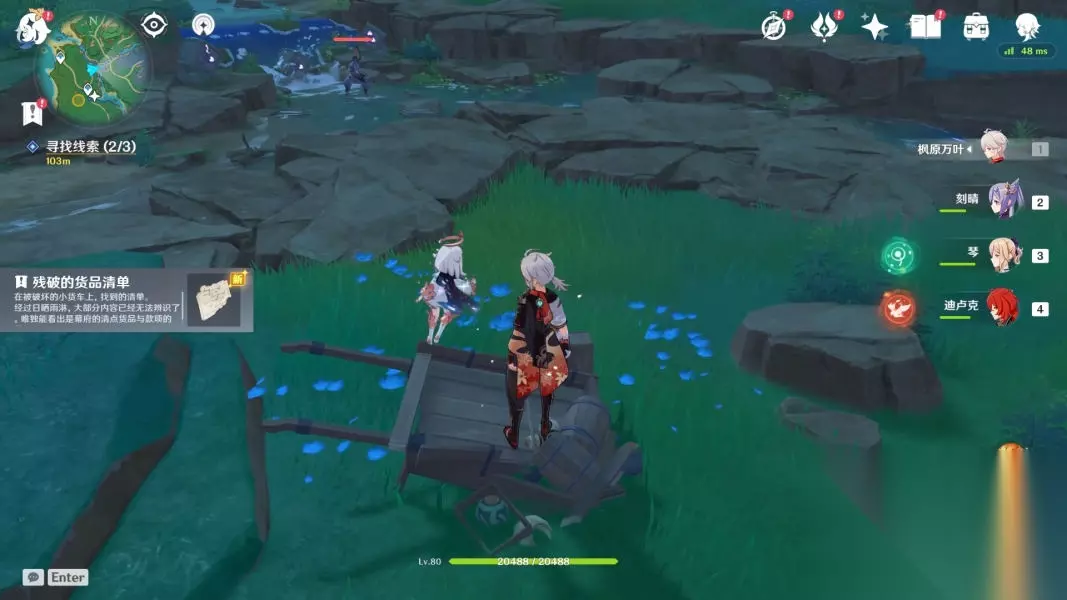 击败丘丘人和木桶后,会出现调查点,调查后会出现第二个狸猫
