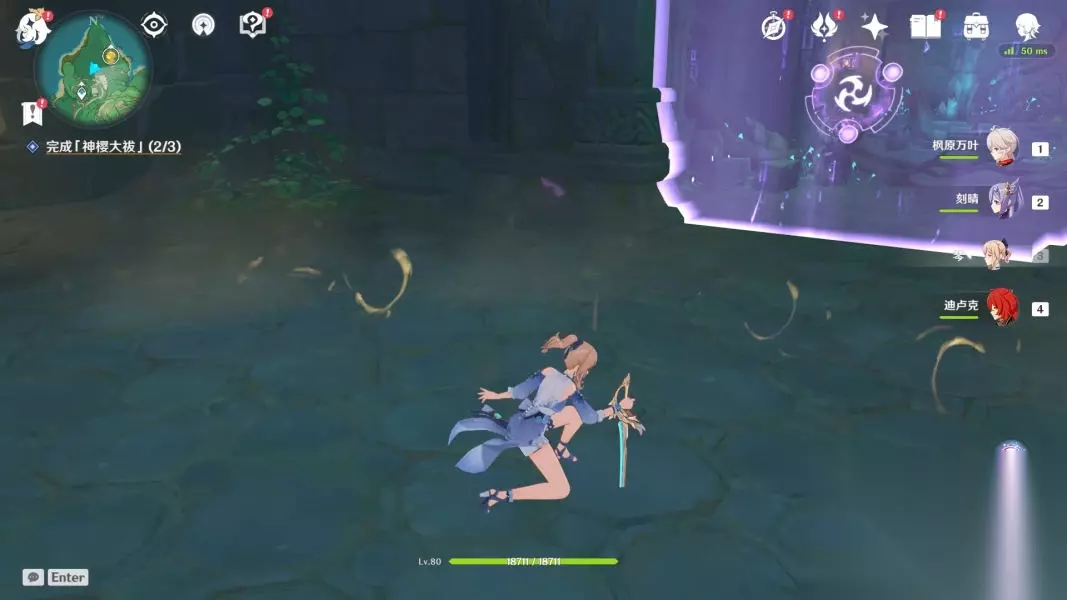 点亮雷机关柱后回到井边,启动机关。