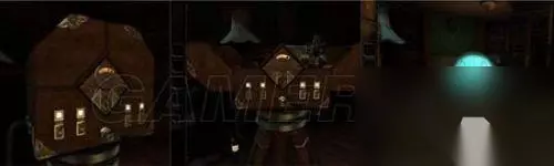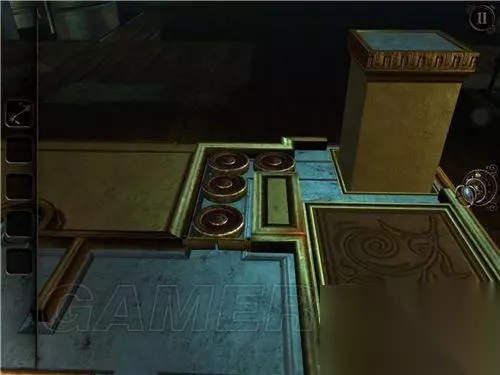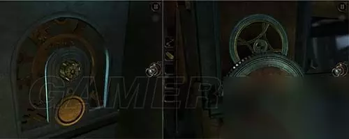 12 在齿轮箱一侧拿到圆柱金属齿轮块,带到大厅此处位置,插上,左前方有楼梯出现。