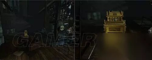 4 转眼来到这个房间,一个机关放于桌上,近前查看。