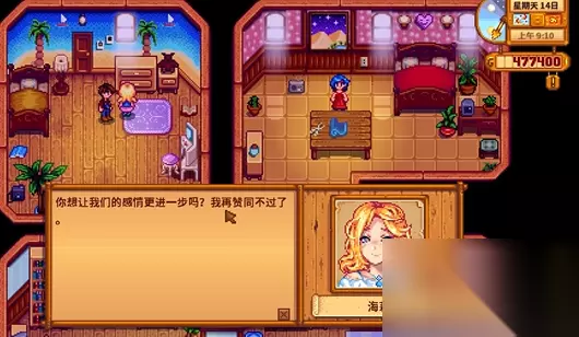 海莉偏爱向日葵、椰子、粉红蛋糕、水果沙拉以及兔子的脚等礼物。相反,她非常讨厌鱼、黏土、野草、矿石类物品以及五彩碎片。她的生日是春季的14日,这一天赠送她最爱的礼物可以获得数倍的好感加成。你与海莉好感度的提高,一系列特殊的剧情事件将会被触发,其中很多都需要你去她的家中拜访才能解锁。例如当好感度足够时,你会在她家里看到她与姐姐艾米丽的互动。达到十颗心后,她会主动邀请你进入她卧室后的暗室。当你们确立伴侣关系并结婚后,她会从柳巷2号搬来你的农场同住,但她依然会偶尔回到这个家看望她的姐姐。