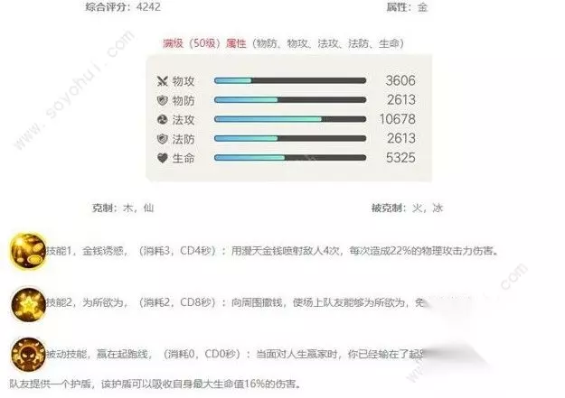 根据人生赢家的技能属性来看,他是属于擂台型妖灵,并非大家想象中挂件就可以的妖灵。至于打输出的话,估计没有那么乐观,虽说数据显示有1W多法攻,但是人生赢家是靠物理打输出,这个法攻几乎可以无视了。被动和二技能才是“人生赢家”的关键技能。