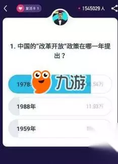 3.游戏页面如下图。游戏中会有一个主持人,当主持人说游戏开始的时候,就会弹出一道选择题,用户只需要在10秒内点击正确答案,选中答案之后,如果答案正确就会进入下一题;如果错误就会自动使用复活卡。没有复活卡的话游戏就结束了