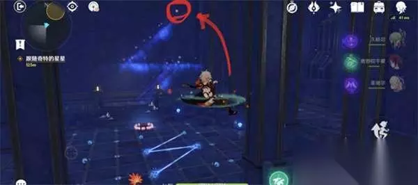4:进门之后可以看到一个操作台,连续点击可以看到提示,然后暂时不用上楼梯,楼梯上的装置摆不出下面的图案的; 5:做完这个之后就会出现一个星星,让你跟着他但是我们不着急,上楼梯做完上面的解谜之后可以得到三个宝箱,然后再去跟着它;