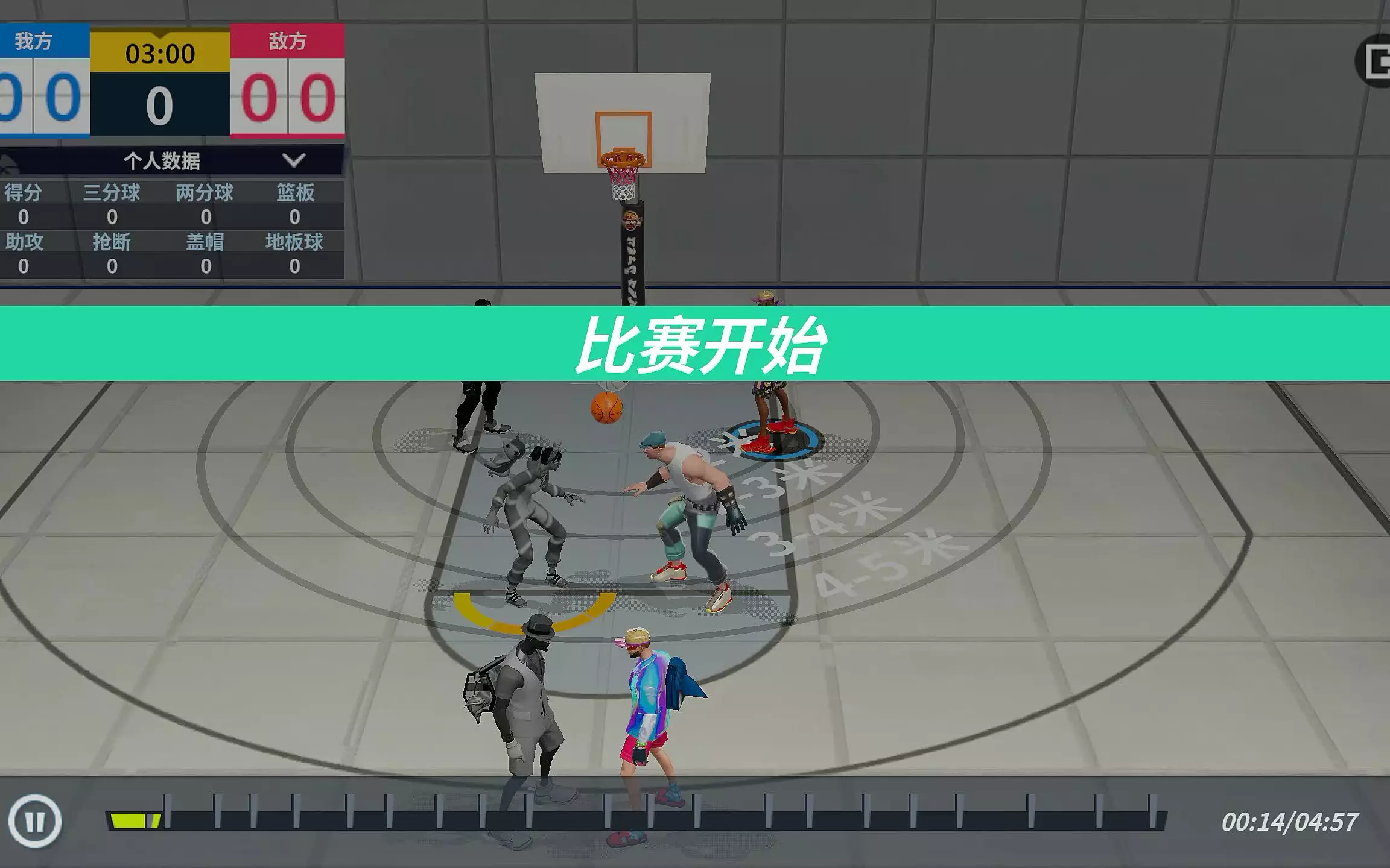这是《全明星街球派对》的游戏内容展示,玩家使用杜兰特进行对局,展现了游戏内的精彩对战过程,还展示了趣味ID,呈现绝活玩家的游戏操作。