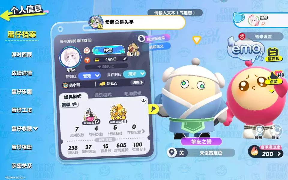 我的蛋仔主页 如果你也是07的 那我们可以聊聊
