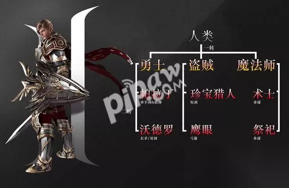 现在游戏开放了6种种族,人类,精灵,矮人,半兽人,黑暗精灵,暗天使,那么哪个职业最厉害呢,天堂2誓言职业推荐给各位玩家,让各位玩家在进入游戏后第一时间可以选择正确的属于自己的职业,现在就跟随小编的脚步一起来了解一下吧。 我们进入游戏首选要做的就是要对种族选择,如果刚开始选择了不适合自己的职业,那么后期要重玩,根本就跟不上别的玩家的脚步了。 人类 种族能力:人类虽无特殊能力但专精化的高等职业则是其最大的优势。 可选职业: 人类战士 、 人类法师 基本参数特征: 具有不错的属性数值,以及均衡发展的基本能力。 【说明】 1、人类一转可以选择勇士(国服可能叫战士),盗贼和魔法师,二转如红字。 2、对于珍宝猎人(就是宝藏猎人啦~)、鹰眼、术士、祭祀大家可能都比较熟悉,就不解释了; 3、帕拉丁比较像圣骑士,沃德罗可能是剑斗士,按照武器看来……但这转职名称翻译来真实一头雾水。